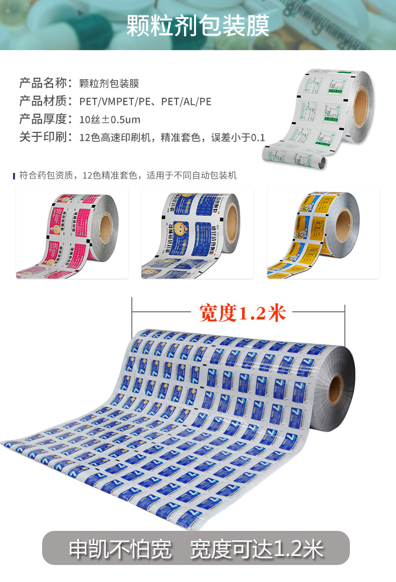 產(chǎn)品名稱:藥用包裝膜 產(chǎn)品材質(zhì):PET/AL/PE? 產(chǎn)品厚度:8絲-12絲 是否可以印刷:可印刷申凱包裝是一家專注藥包材卷膜的企業(yè),擁有從印刷到復(fù)合到全切制袋一整套的生產(chǎn)流程,嚴(yán)謹(jǐn)?shù)馁|(zhì)量檢測機(jī)制,為客戶提供安全穩(wěn)定的藥用包裝。