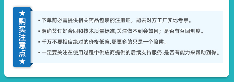 只要用了我們的包裝,不管是包裝膜的問題還是包裝機(jī)的問題,都是我們的問題!只要有質(zhì)量問題,馬上召回,不管有多遠(yuǎn)!
